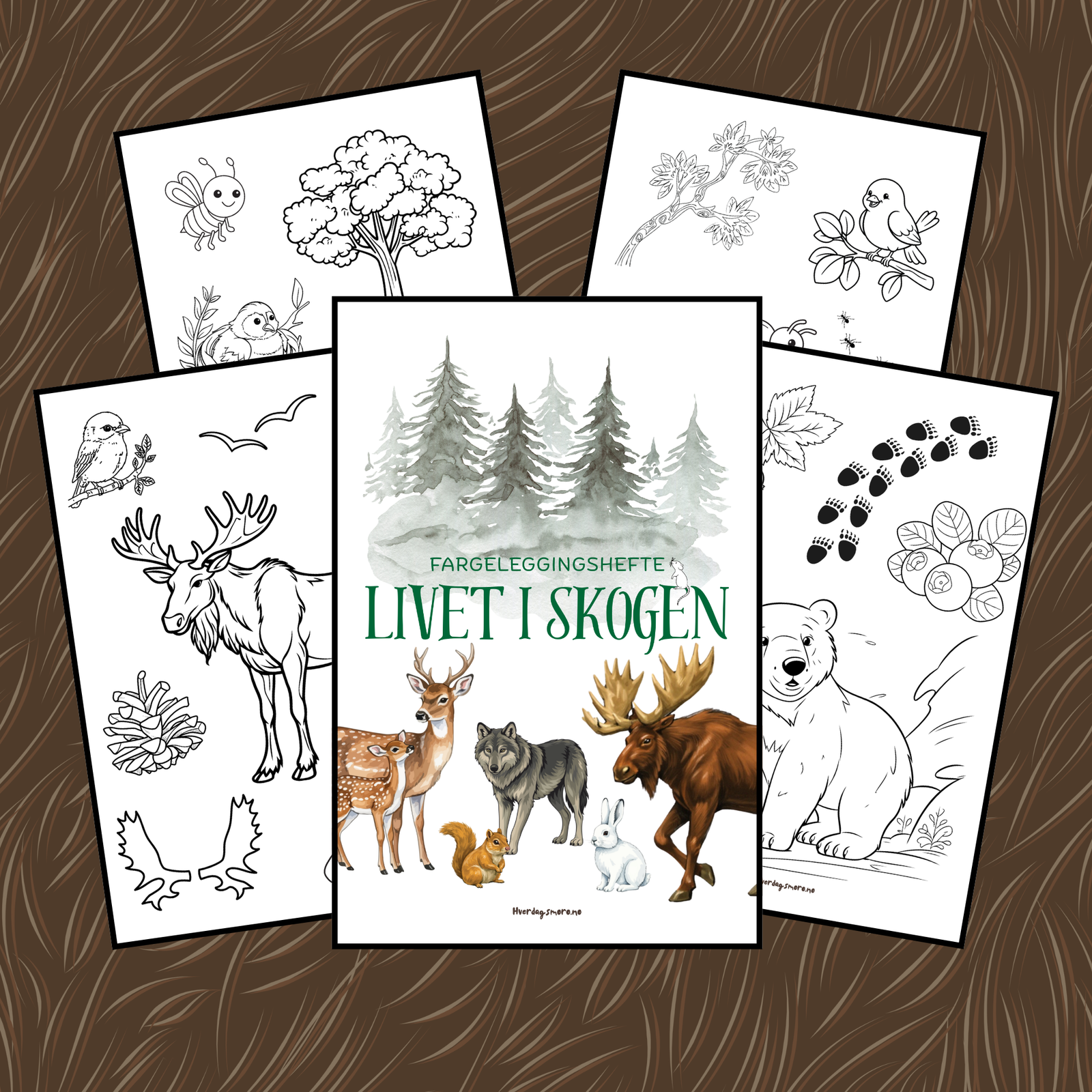 La barna utforske livet i skogen gjennom kreativ lek! Heftet byr på søte og enkle tegninger av skogens dyr, trær, sopp og natur – perfekt for rolige stunder hjemme eller i barnehagen 🎨🍄