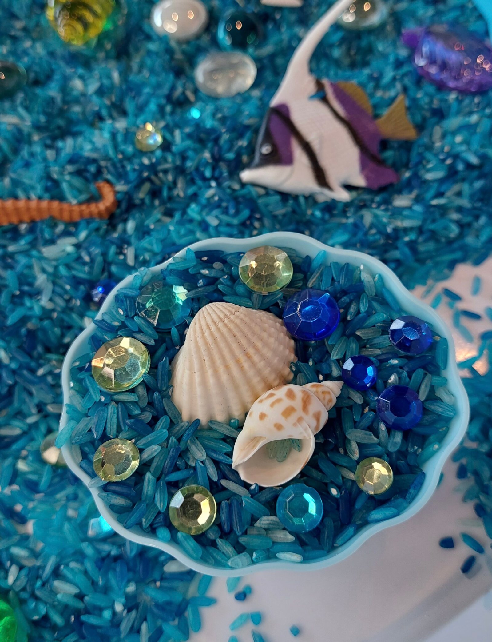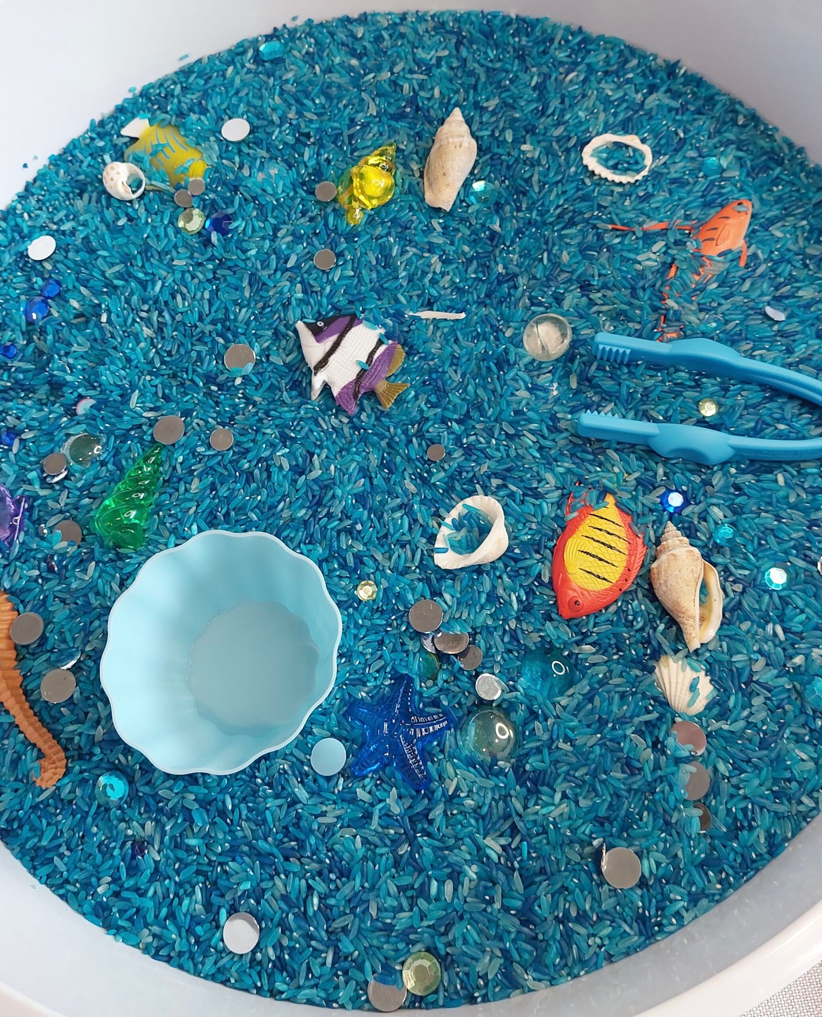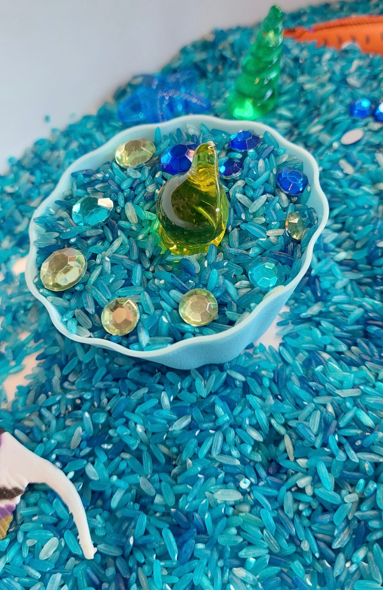 - 2 x 500 g farget blå ris (ikke spiselig)