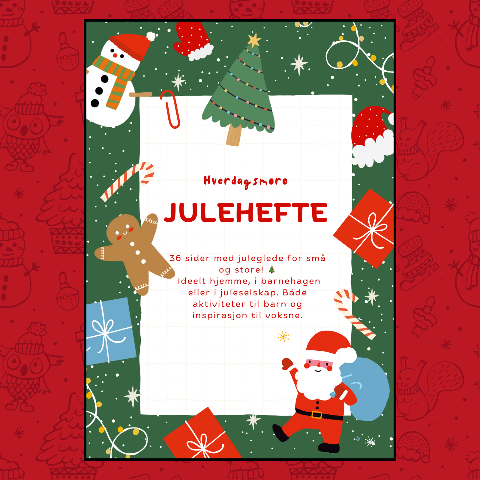 Et fullspekket aktivitetshefte med oppgaver som skaper lek, læring og gode minner for både barn og voksne. Perfekt til bruk hjemme, i barnehagen eller som hyggelig aktivitet i juleferien 🎅❤️