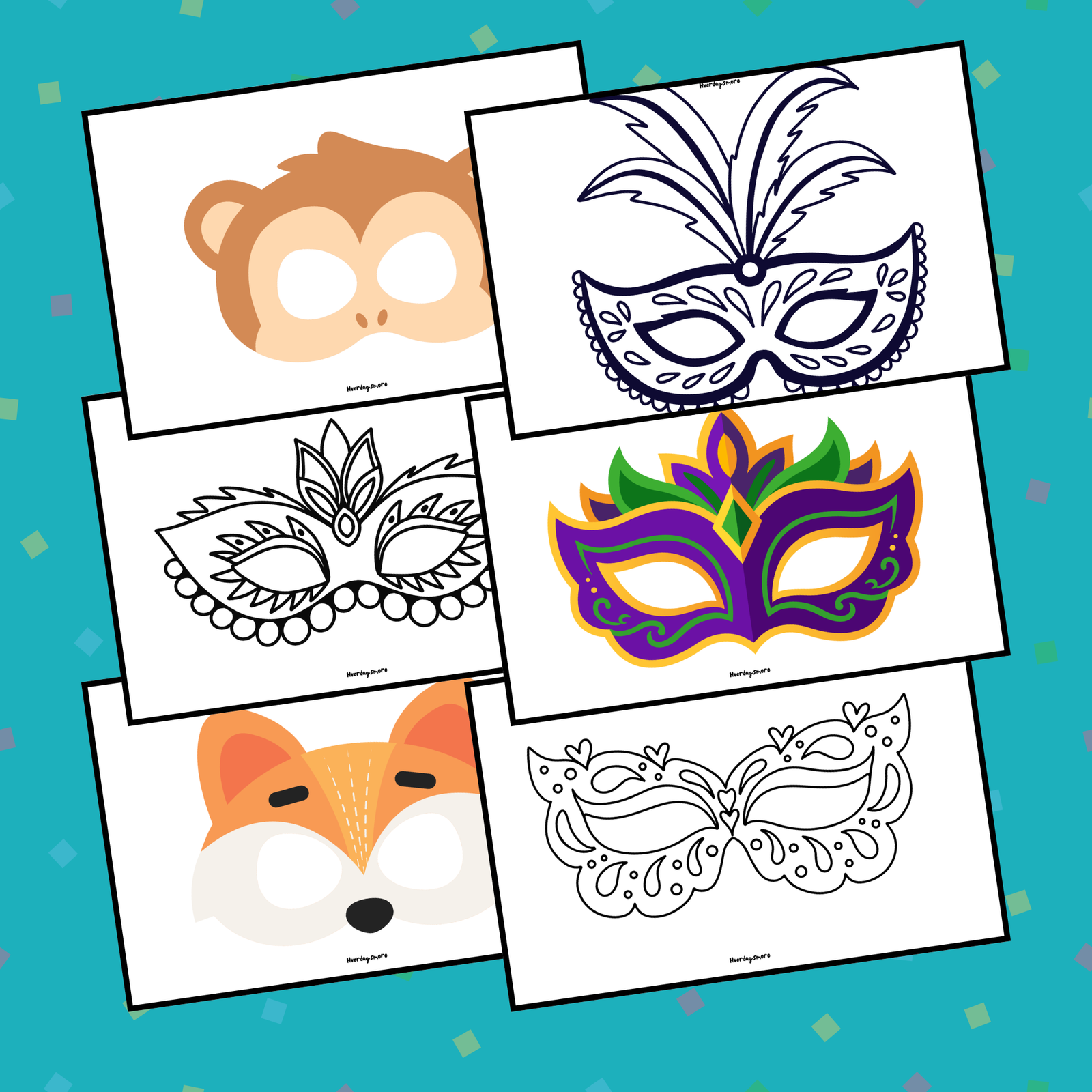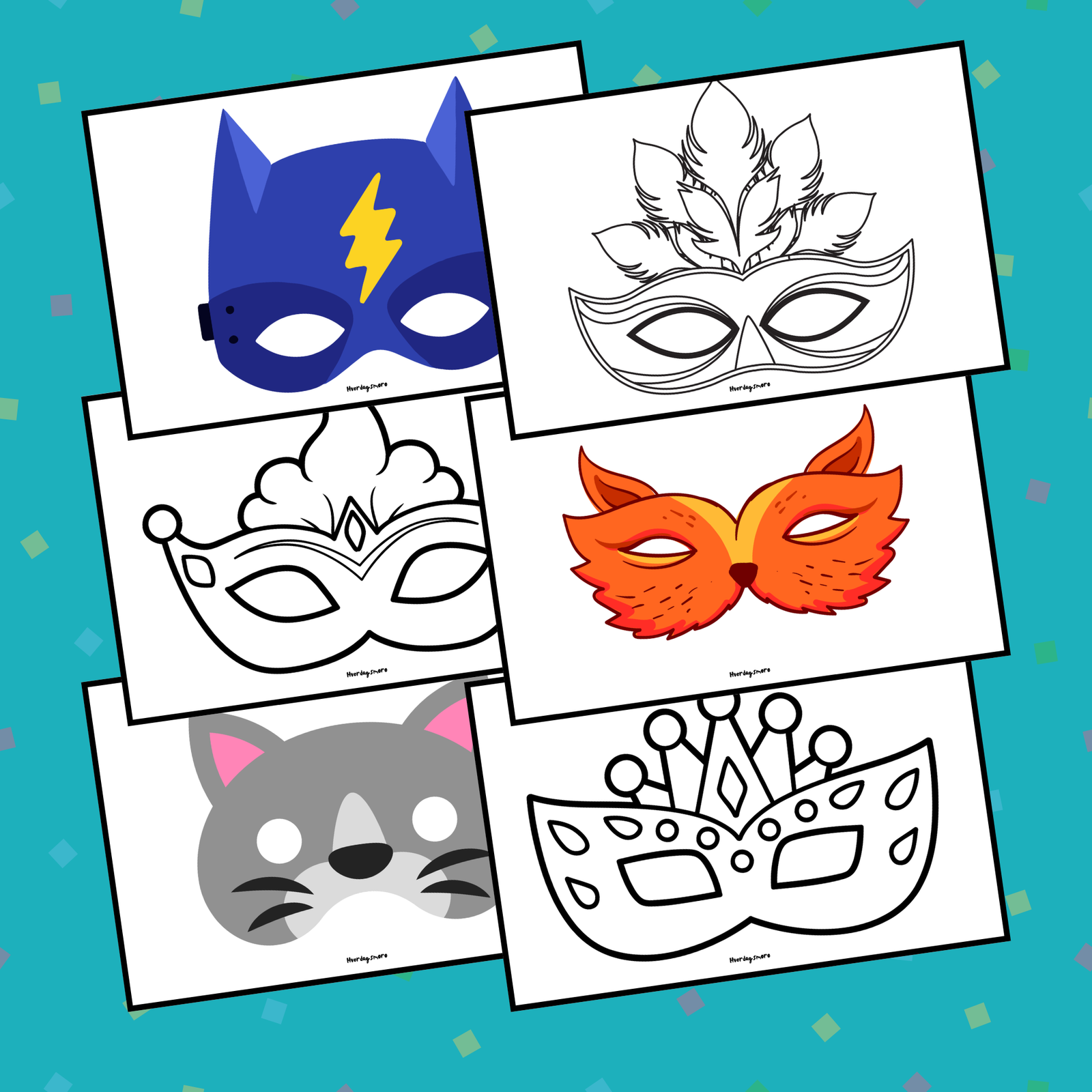 Kreative kostymemasker som inviterer til fargelegging, klipping og rollelek – perfekt til kreative stunder, temalek og karneval 🎭