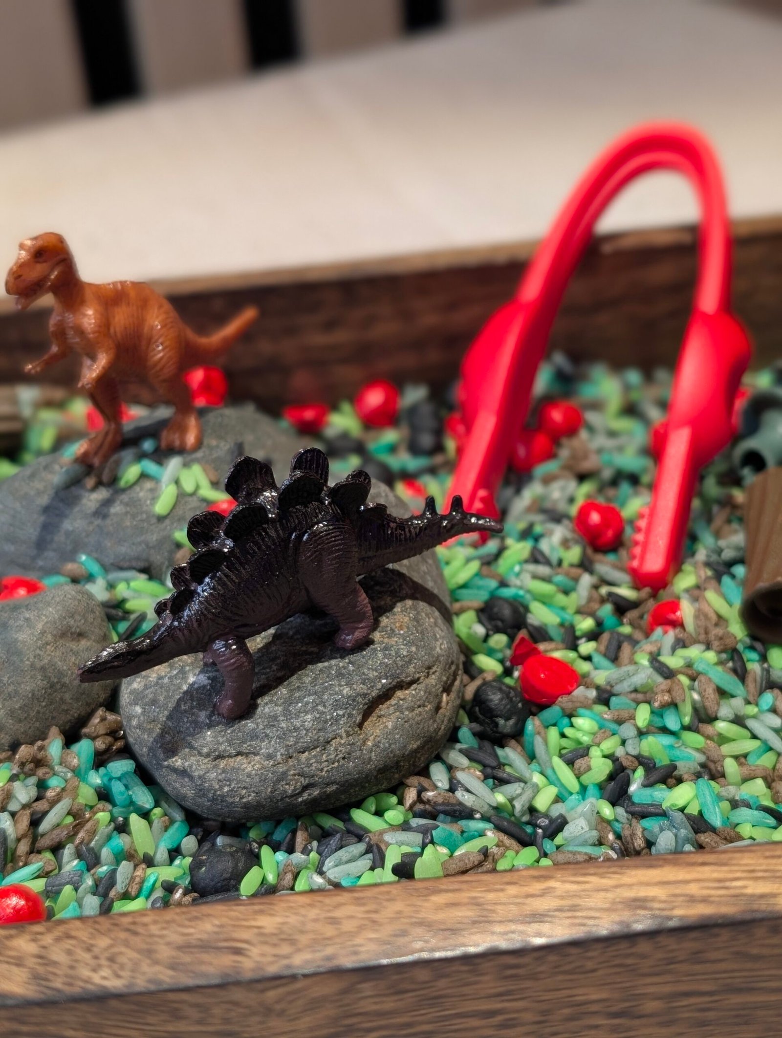Junior fikk denne når han kom hjem fra barnehagen i dag, han satt i over 30 minutter og lekte alene, noe som nesten aldri skjer! Koste seg sikkelig, og sansepakken åpnet for mange forskjellige måter å leke på. Pinsetten var fin til å plukke opp forskjellige ting å putte i skålen og telle og leke med dinosaurene. I kombinasjon med dinosaur tellekortene og bildekortene av dinosaurene åpnet det for flere måter lek, spørsmål og undring. Denne sansepakken blir nok mye brukt her i hus framover🦕